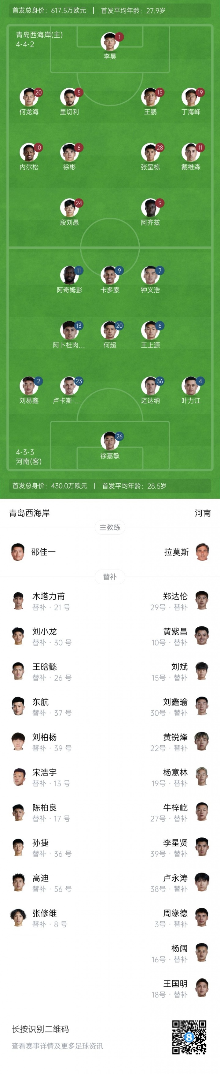 西海岸vs河南首发:阿齐兹、阿奇姆彭出战,段刘愚、王上源先发