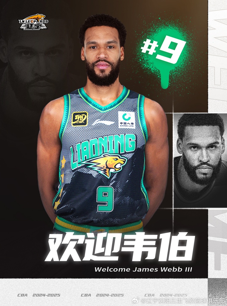 欢迎詹姆斯-韦伯加入辽篮大家庭 球员已于今日抵达沈阳