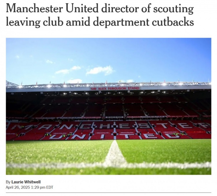 TA:曼联球探将在第二轮裁员中大幅减少 总监布朗将在六月底离任