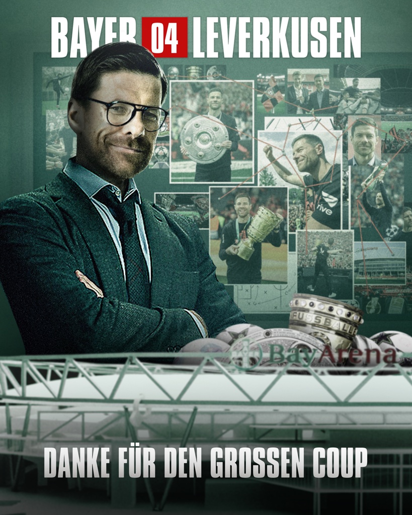 我认为是时候宣布了,我与俱乐部已经达成协议,接下来将是我执教勒沃库森的最后两场比赛。我对勒沃库森俱乐部、球员团队、工作人员及非凡球迷群体充满感激。我们的成功是卓越团队协作的结晶。这支赋予我绝对信任的球队,完全配得上队史首座德甲冠军奖杯。衷心感谢所有助力实现联赛杯赛双冠伟业的人们。勒沃库森已为未来做好充分准备,我将满怀期待见证这支球队续写辉煌。