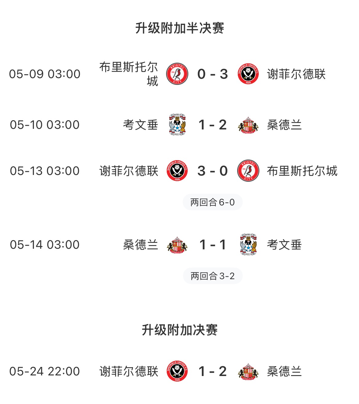 5月25日讯 2024-25赛季英冠升级附加决赛,桑德兰2-1绝杀逆转击败谢菲联,抢到最后一个英冠升级席位,桑德兰时隔8年重回英超怀抱!