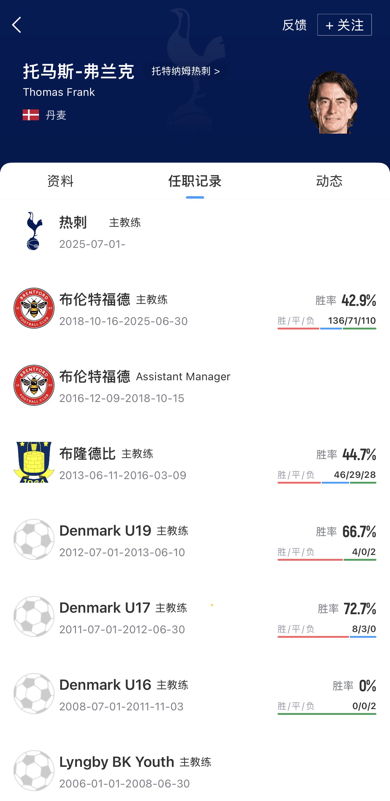 托马斯-弗兰克现年51岁,2016年来到英国成为布伦特福德的助教,2018年10月出任小蜜蜂主帅,原合同2027年到期。